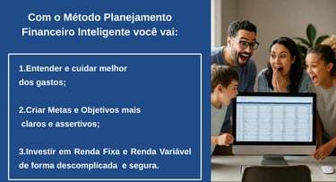 O Planejamento Financeiro Inteligente é um método testado e aprovado que ensina pessoas a cuidar do seu dinheiro de uma forma mais simples e eficiente.